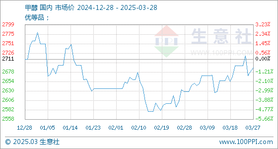 3月28日,生意社甲醇基准价为2690.00元/吨,与本月初(2629.17元/吨)相比,上涨了2.31%。