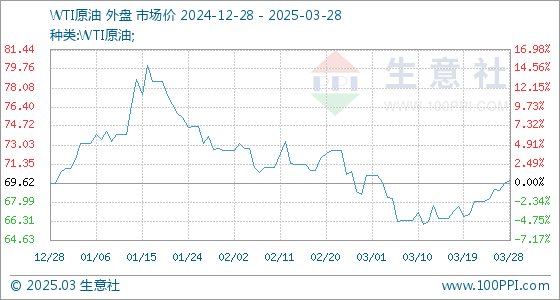 3月28日生意社WTI原油基准价为69.65美元/桶