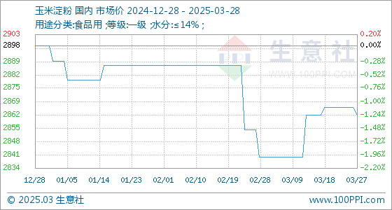 3月28日生意社玉米淀粉基准价为2862.00元/吨