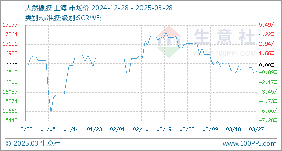 3月28日生意社天然橡胶基准价为16556.00元/吨