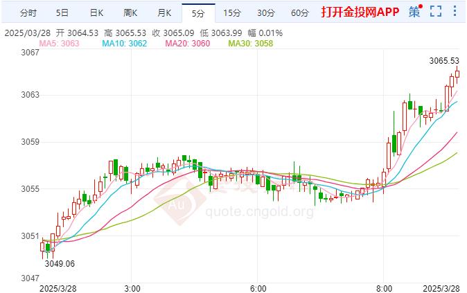 今日周四(3月28日)亚市早盘,现货黄金延续上涨,目前交投于3065.91美元/盎司,涨幅0.31%。金价周四刷新了历史记录高点至3059.35美元/盎司,收报3056.68美元/盎司,在全球贸易紧张局势升级和股市暴跌后,投资者纷纷寻求避险资产。