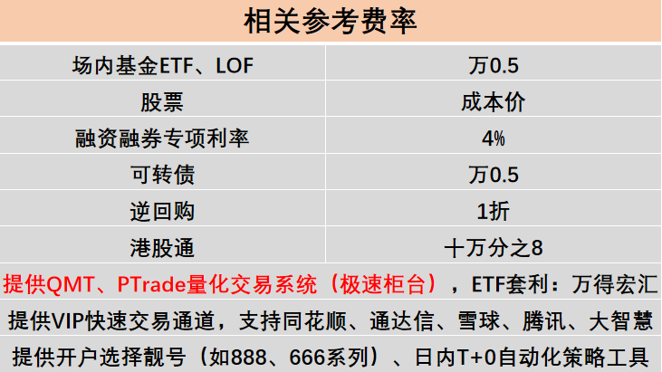 以下是量化交易相关费率标准,我司上市证券公司,欢迎电话/微信联系开户!