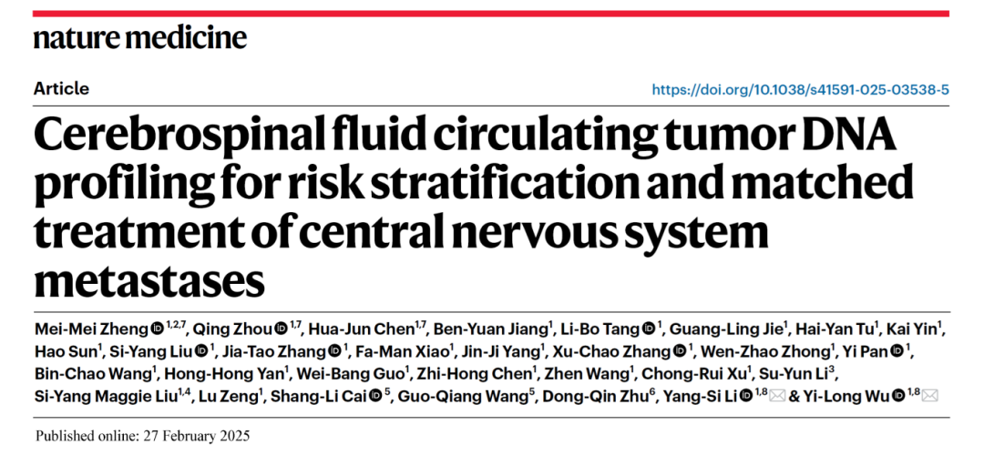 IF=58.7!吴一龙教授牵头在国际顶刊发表液体活检研究,破局晚期NSCLC患者中枢神经移诊疗难题