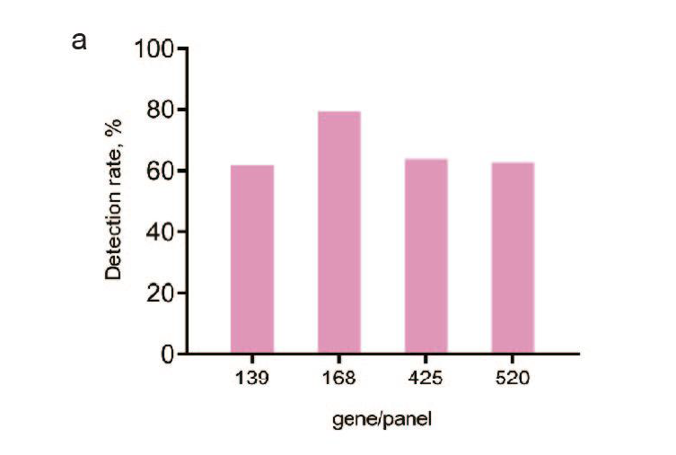 图c和图e分别为燃石朗清 168基因panel和燃石OncoCompass Plus-520基因panel的检测情况