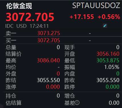 3月28日,伦敦金现向上突破3080美元/盎司大关。截至记者发稿,盘中最高触及3086.04美元/盎司,续刷历史新高。