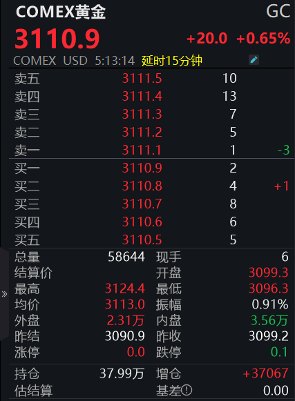 期货方面,COMEX黄金今日同样再创新高。截至记者发稿,盘中最高点触及3124.4美元/盎司。