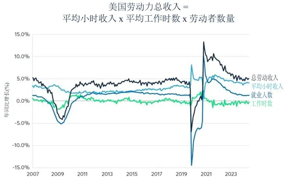 如需更高频地跟踪名义GDP走势,投资者可以关注每月发布的美国就业报告。通常,市场关注的是该报告的各项构成指标,如非农就业数据环比变动、平均小时收入同比变动以及总工作时数。然而,从概念上讲,将这些指标统一转换为同比百分比变化,并将其串联起来计算总劳动收入更具分析意义。如果就业人数下滑、薪资增速放缓或工时减少等任何组合因素导致总劳动收入增速跌破当前5%的水平,则可能预示着信用利差即将扩大(图5)。