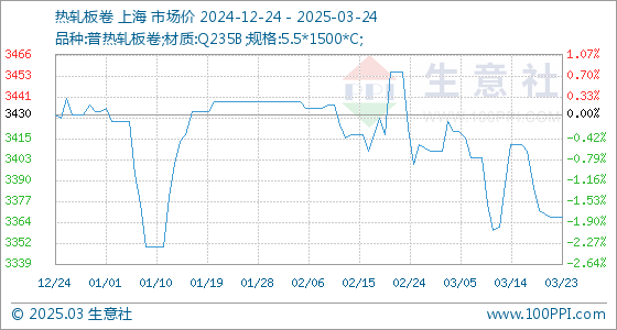 3月24日生意社热轧板卷基准价为3368.00元/吨