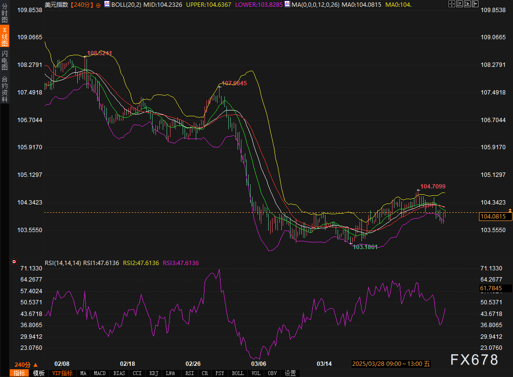 汇通财经APP讯——周一(3月31日),当前外汇市场聚焦于美国即将公布的最新关税言论,市场情绪进入高度敏感阶段。美元指数在关键点位附近窄幅震荡,技术面与基本面交织的复杂信号令多空双方均保持谨慎。本文将结合最新政策动向及技术指标,对美元指数的短期与中期趋势进行推演。