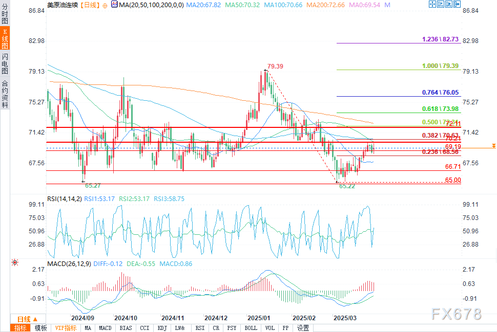 汇通财经APP讯——周一(3月31日),WTI原油期货日内呈现波动状态,价格在欧市早盘大幅上扬,突破70.00整数关口后有所回落,但仍保持在相对高位震荡。
