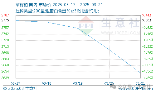 近日菜粕市场价格走跌。主因加征关税政策落地,市场炒作热度有所下降;3-5月本就是菜粕需求淡季,水产养殖未大规模开启,叠加豆粕供应缓解、价格优势显现,作为替代品分流了菜粕需求。预计短期菜粕将维持震荡态势。