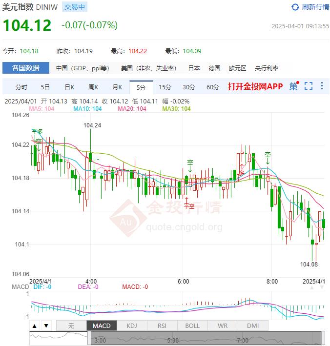 北京时间周二(4月1日)亚盘开盘,美元指数交投于104.11附近,主要非美货币对美元涨跌不一,欧元/美元交投于1.0823附近,英镑/美元徘徊在1.2920附近,澳元/美元徘徊在0.6234附近,美元/加元徘徊在1.4399附近,美元/日元暂处149.71附近。今日基本面关注17:00 欧元区3月CPI月率初值。