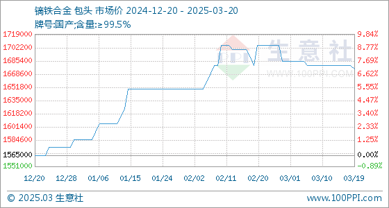 3月20日生意社镝铁合金基准价为1675000.00元/吨