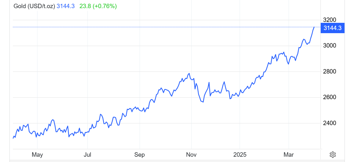 黄金站上3100美元高位!华尔街坚定看多:麦格理押注Q3直奔3500!高盛豪言年底有望冲破4000!