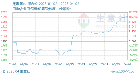 4月2日生意社尿素基准价为1995.00元/吨