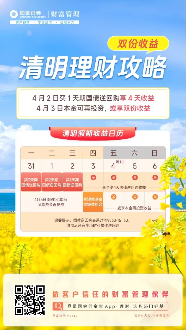 清明假期理财攻略来了! 2步操作,一份本金或享双份收益!