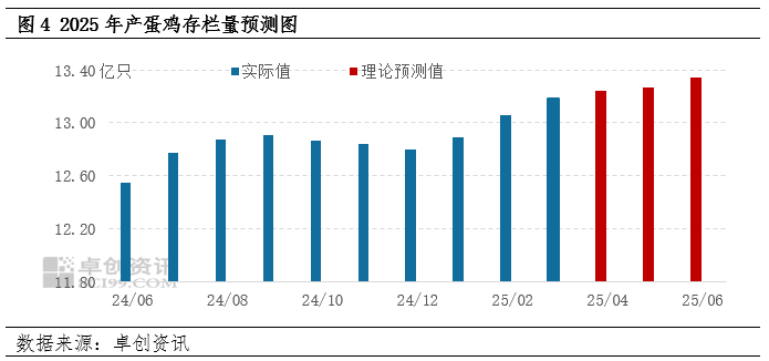产蛋鸡存栏量仍有增加预期。根据影响产蛋鸡存栏量的重要指标补栏量、出栏量、上月存栏基数等,可推断4月新开产蛋鸡数量增加,部分换羽蛋鸡4月份逐步进入开产期,加之2月份起产蛋鸡存栏基数已突破13亿只,因此4-6月份产蛋鸡存栏量理论值仍将维持在13亿只以上,并仍有增加预期,鸡蛋供应压力进一步增加,对鸡蛋价格的利空影响程度加深。