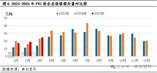 供应端开工维持高位,一季度天气较冷,上游不适合检修,产量较高。据卓创资讯统计数据显示,今年一季度PVC粉产量在599.9823万吨,同比增加0.42%。较去年四季度减少0.04%。一季度检修企业较少,行业开工维持偏高,仅乙烯法企业在2月下旬到3月提前检修,这段时间乙烯法企业检修相对集中,但随着新浦化学50万吨新装置产量逐步增加,一定程度上弥补了乙烯法企业检修带来的产量损失。