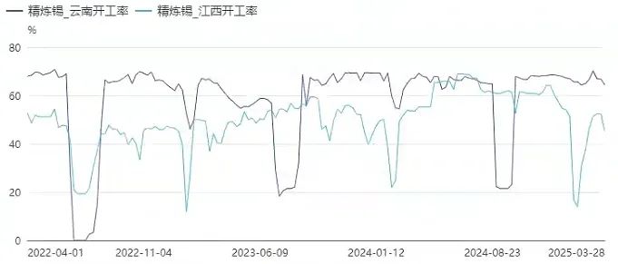 刚果(金)武装冲突导致Alphamin暂停旗下Bisie矿山运营,加剧了全球锡矿供应的紧张局面,另近日缅甸发生7.9级地震,当地复产进度延后,进一步减少了国内锡矿进口量。受原料紧张制约,云南与江西精炼锡冶炼企业开工率开始回落,供应偏紧。
