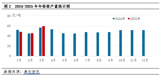 供需矛盾不突出,铅价上涨。1季度供应先减后增,节后需求恢复稍快于供应增速。数据显示,一季度国内精铅总产量预估值为152.63万吨,环比减幅1.43%。其中原生精铅产量预估值为85.73万吨,再生精铅产量预估值为66.9万吨。
