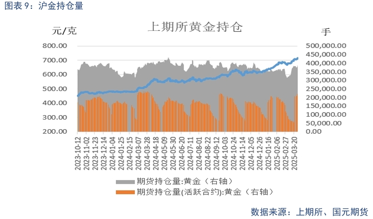 截止3月28日当周,沪金主力期货持仓量为220712手,较上周增加13411手;沪银主力期货持仓量为488509手,较上周增加78688手。