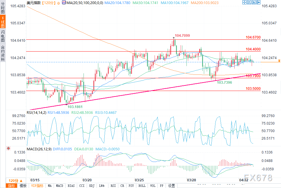 汇通财经APP讯——周三(4月2日)欧洲时段,美元指数(DXY)徘徊在104.19附近,交易员们评估最新经济数据的复杂信号,美元指数波动有限。
