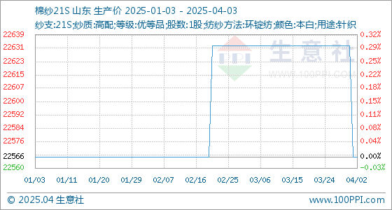 4月3日生意社棉纱21S基准价为22566.67元/吨
