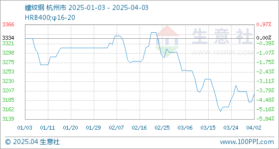 4月3日生意社螺纹钢基准价为3201.33元/吨