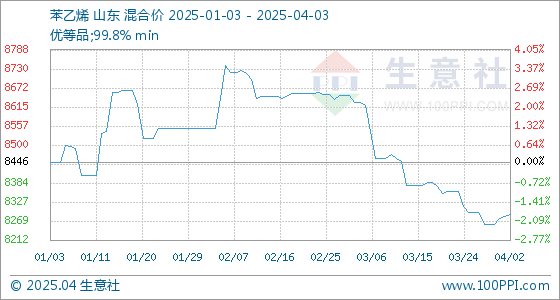 4月3日生意社苯乙烯基准价为8290.00元/吨