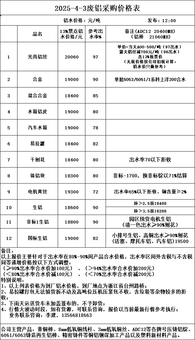 回收废铝今日报价