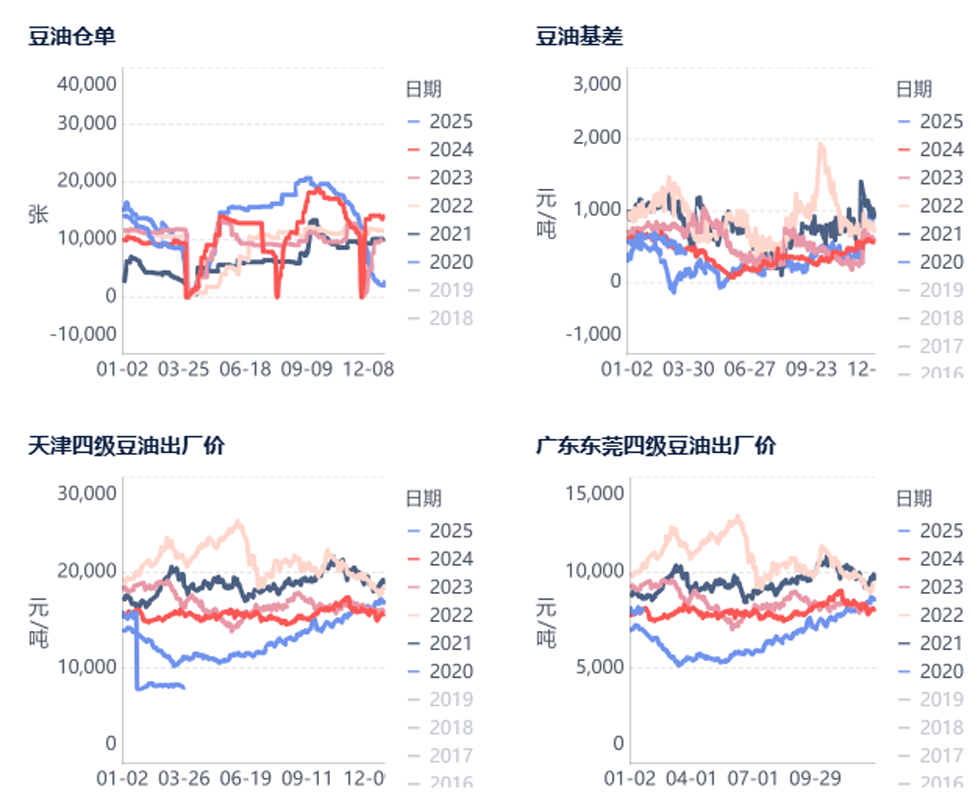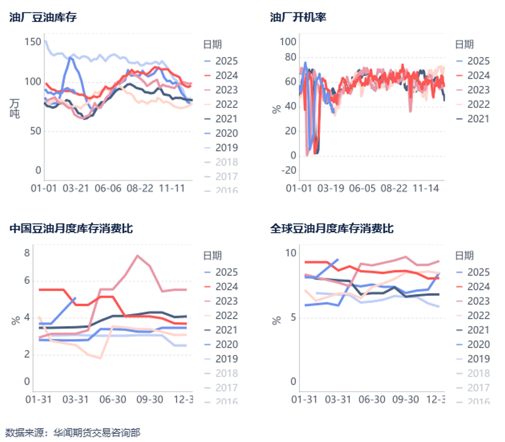 在USDA预期全球大豆增产2579万吨的背景下,至少25年二季度全球油料供应是相对偏宽松的,这将导致豆油供应出现阶段性宽松状态。