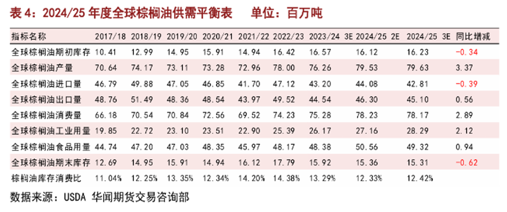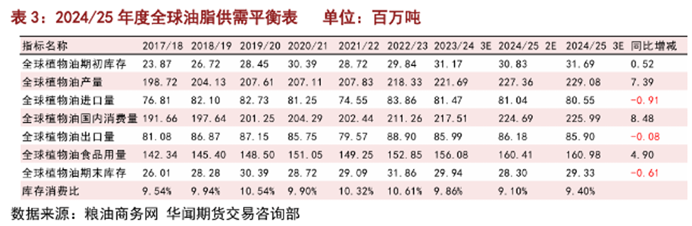 综合来看,2024/25年度全球油脂供需结构整体向好,但存在阶段性缺口缩窄情况。