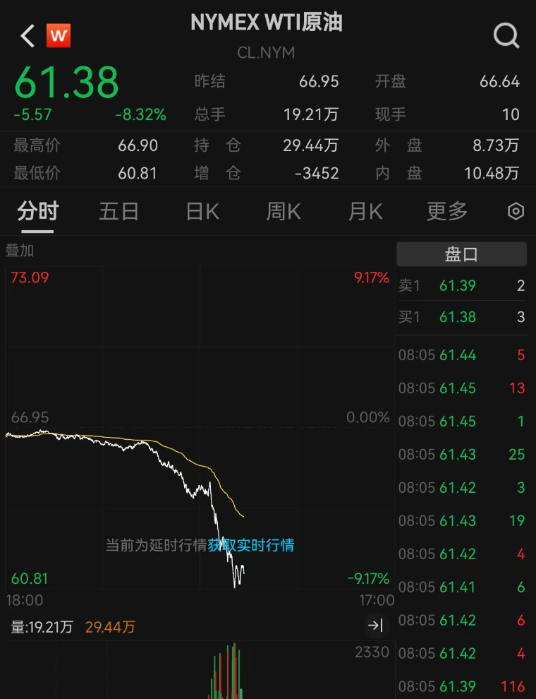 全球经济衰退交易愈演愈烈,原油等商品市场也出现大跌。NYMEX WTI原油盘中跌超9%。