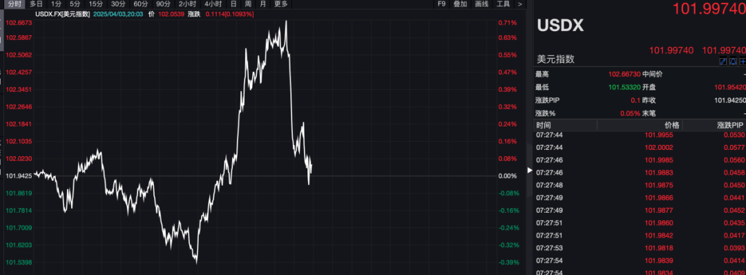 在特朗普大规模关税风暴的影响下,新一轮避险情绪笼罩全球,美股期货跌势扩大,欧洲主要股市全线大跌,原油等商品大跌,美元跳水,澳元兑美元和新西兰元兑美元等大跌。