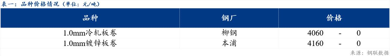 今日市场冷轧板卷主流资源价格4060元/吨,较上一交易日持平;镀锌板卷主流资源价格4160元/吨,较上一交易日持平。