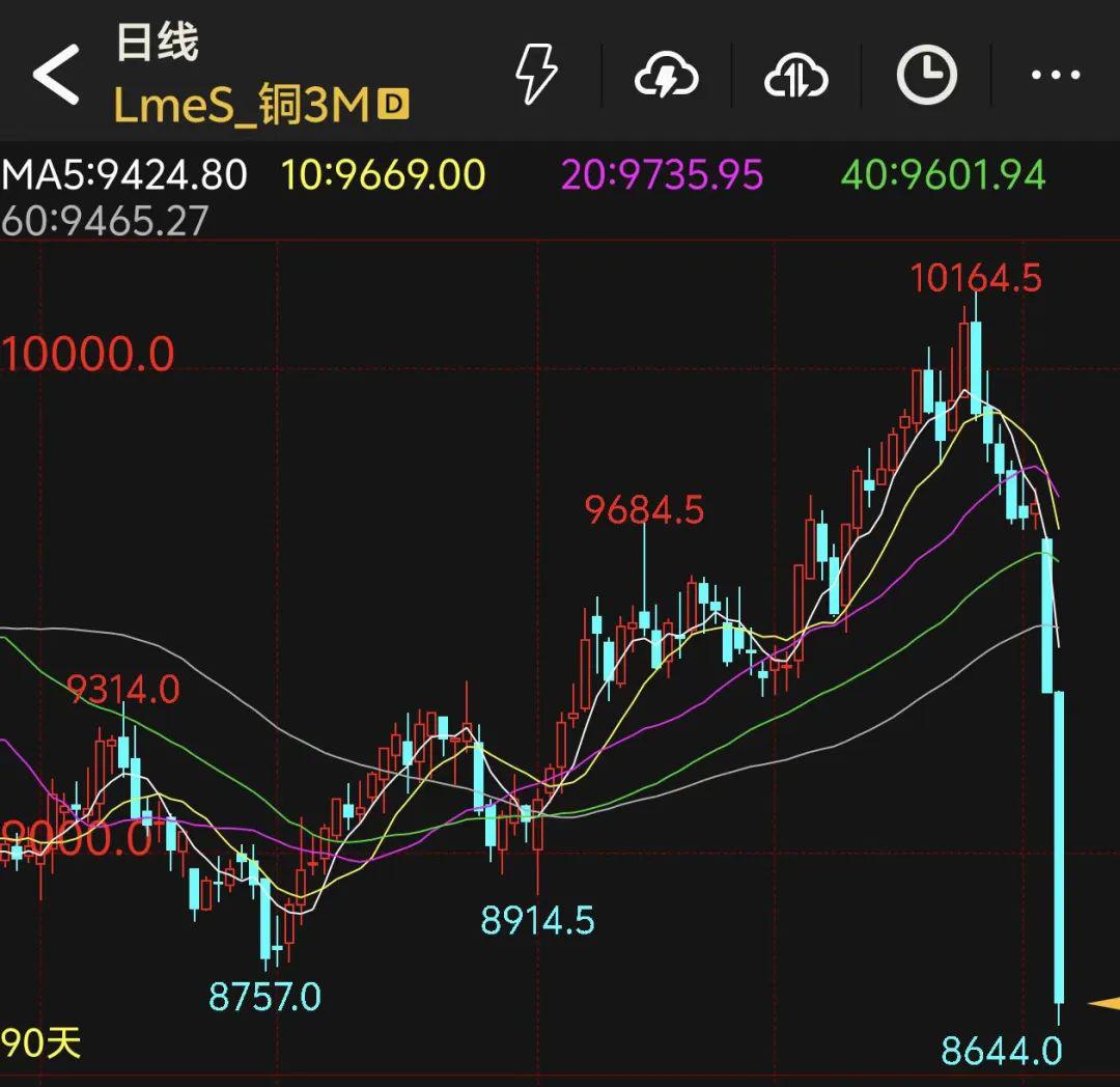 外盘铜市场在关税冲击影响下出现大跌,其中LME铜跌幅达8.95%,COMEX铜跌幅达10.21%。