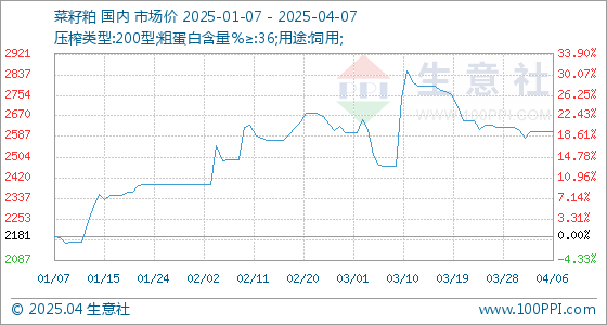4月7日生意社菜籽粕基准价为2606.67元/吨