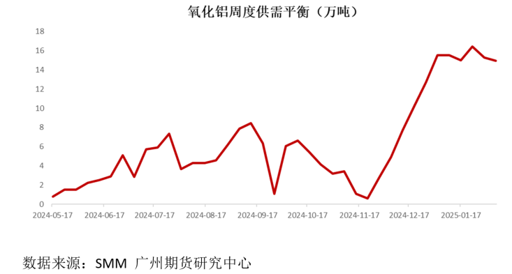 矿端量增价跌拖累氧化铝生产成本支撑,根据SMM数据,截至3月28日,氧化铝生产完全成本在3223元/吨,市场现货报价已跌破成本线,部分氧化铝厂在利润受损、成本下破的压力下被迫弹性减停产,政策明确限制新增氧化铝项目能效与环保标准,山东、山西等高成本产能或加速退出,而沿海绿电产能布局加速,年内国内氧化铝计划新增1480万吨产能,叠加印尼、印度等海外投产,市场供需过剩压力显著,周度供应过剩量稳定在11万吨以上,电解铝厂原料库存天数持续下降,反映下游市场对氧化铝量增价减观点。