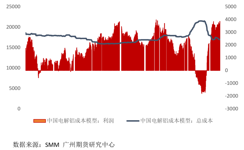 截至2025年2月,我国电解铝建成产能达4364.83万吨,产能利用率高达96%,在电解铝产能天花板4550万吨的硬性约束下,后续产能提增空间极为有限。部分产能正计划向绿电资源丰富的省份迁移,但西南地区水电供应的不确定性仍存,导致供应端增量有限且存在潜在减量干扰。当前氧化铝及电力成本持续下降,电解铝平均生产成本走弱,行业即时利润已修复至3500元/吨附近高位,厂家开产态度积极。