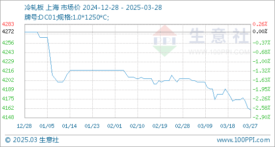 3月28日生意社冷轧板基准价为4160.00元/吨