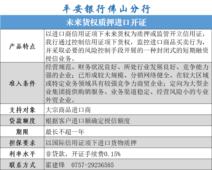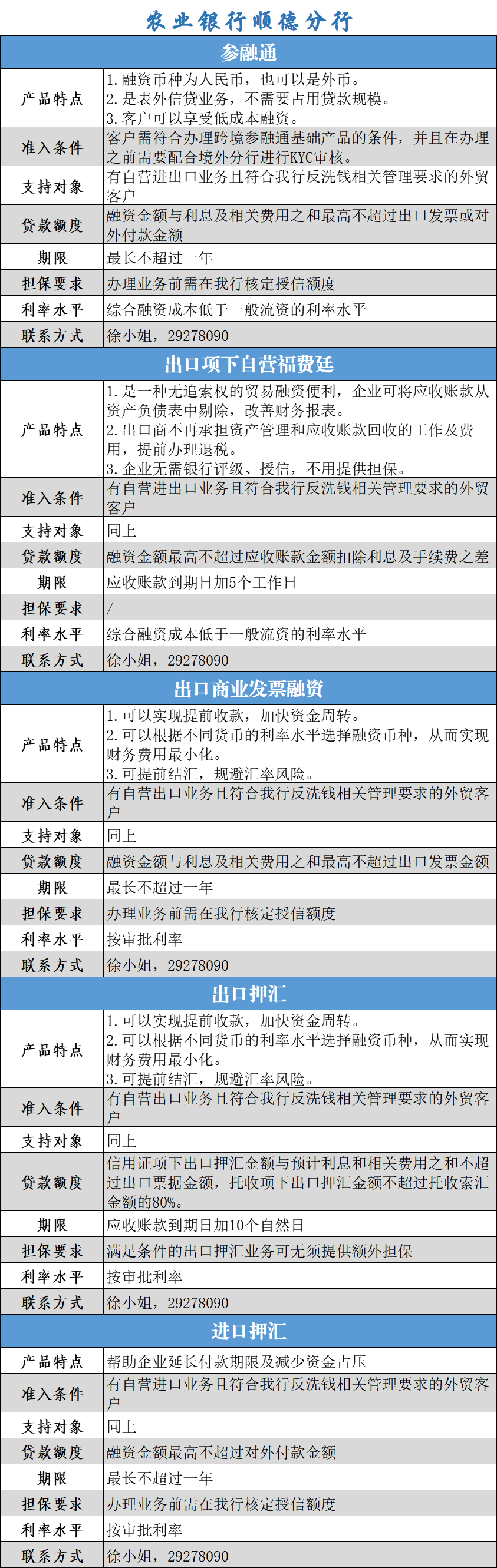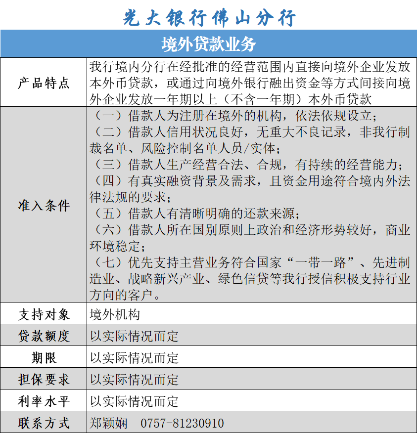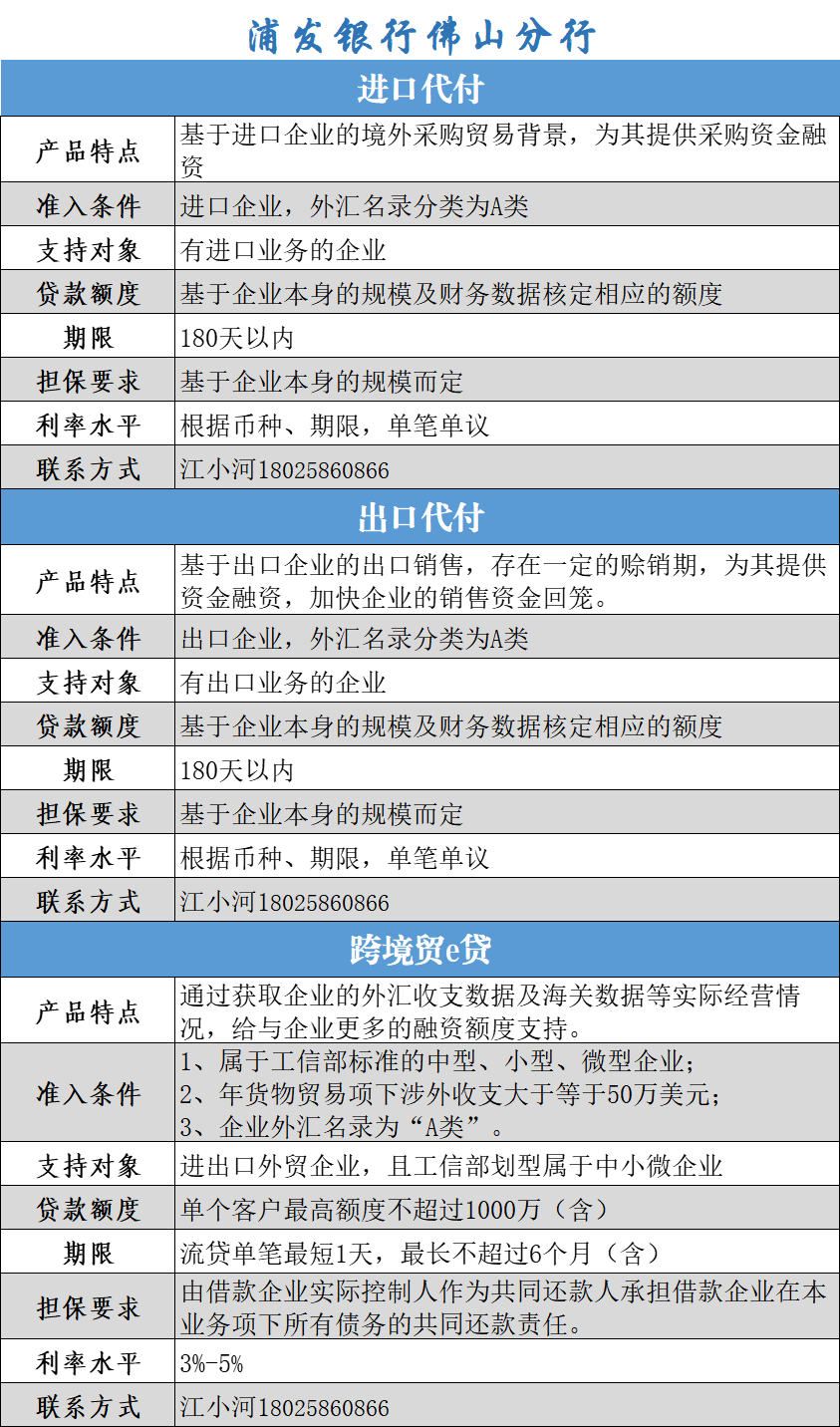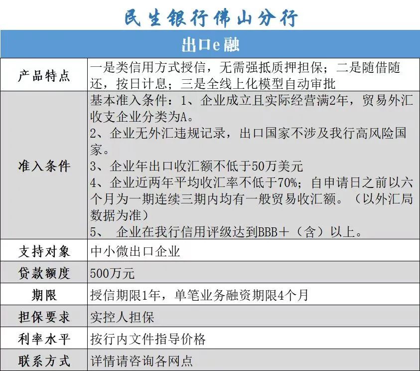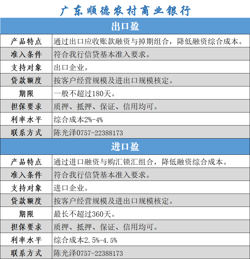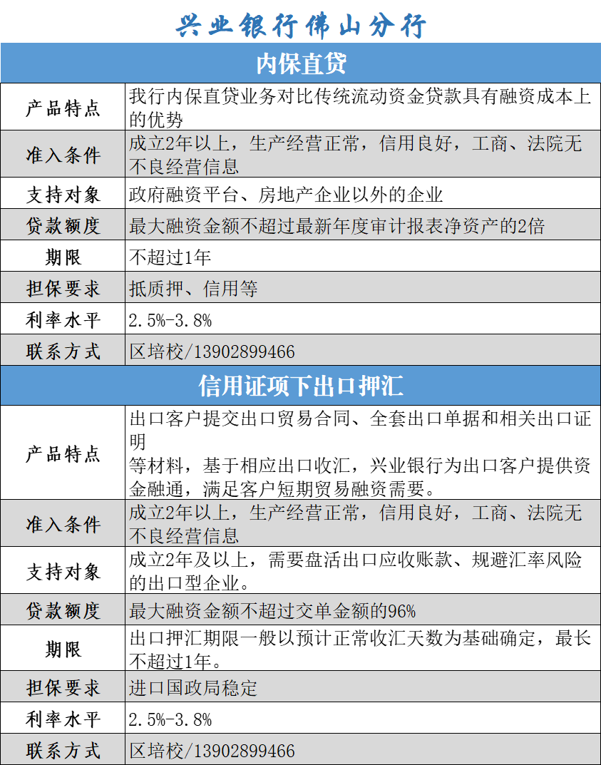 为贯彻落实党中央、国务院稳外贸工作决策部署,进一步加大对各类外贸主体的金融支持,优化融资、结算、外汇等金融服务,中国人民银行佛山市分行、国家外汇管理局佛山市分局积极引导辖内银行业金融机构创新服务产品,整理形成融资、结算、外汇等系列金融支持稳外贸产品和服务汇编,现予发布第一期——外贸专属融资服务产品,有融资需求的市场主体可向相关金融机构咨询办理。