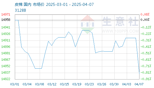 上周棉价先涨后跌,宏观层面影响下,美棉大跌,国内行情窄幅波动。美国“对等关税”落地,政策引发全球资产价格剧烈波动,市场信心下挫,ICE期棉和郑棉期货价格大幅下跌。随后中方出台反制措施,力度较强,对美棉关税累计加征幅度达到49%,稳定国内市场信心。据生意社商品行情分析系统,截至4月7日3128B级皮棉现货价格在14834元/吨,周跌幅为0.51%。