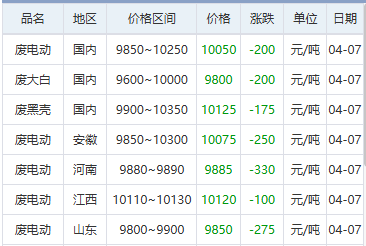 1.【市场】河南A回收商:4/5那天把货全定出去了,当天就没收货了,等今明两天看下厂里价格。