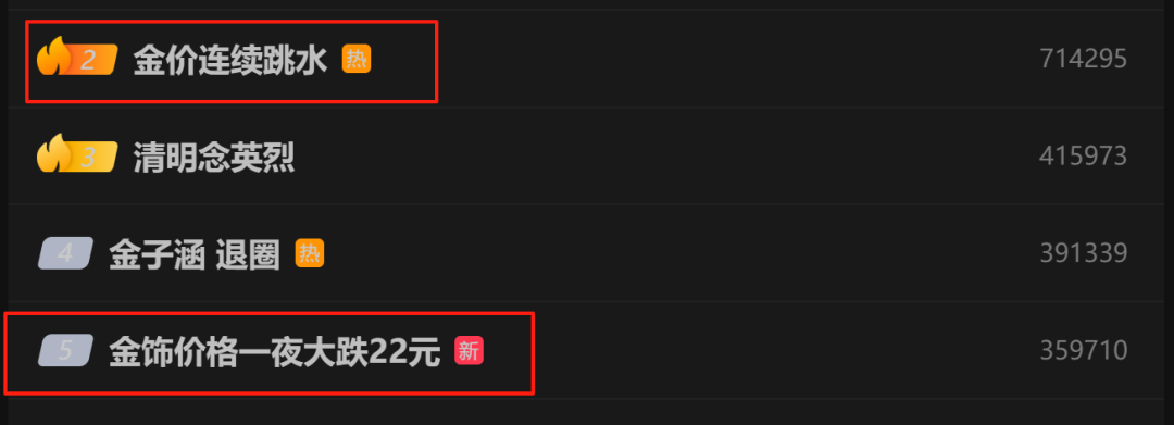 4月5日,#金价连续跳水#的话题登上微博热搜。
