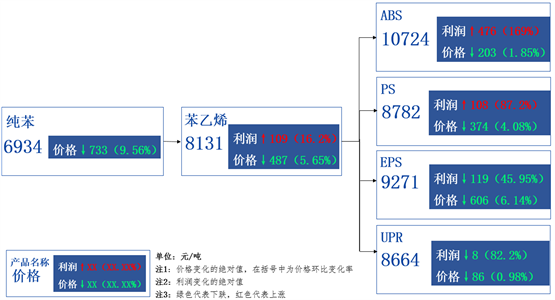 【导语】3月份苯乙烯上下游产业链价格全线下跌,其中上游纯苯跌幅最为明显,苯乙烯及其部分下游盈利能力有所修复。
