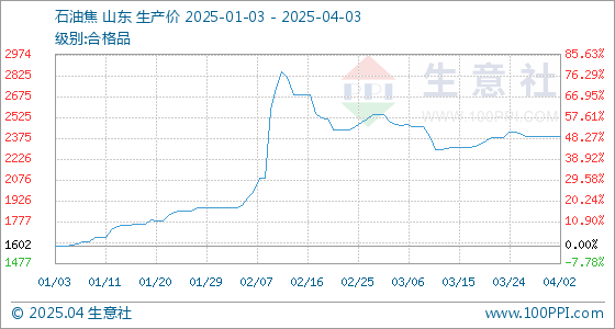 4月3日,生意社石油焦基准价为2387.50元/吨,与本月初持平。