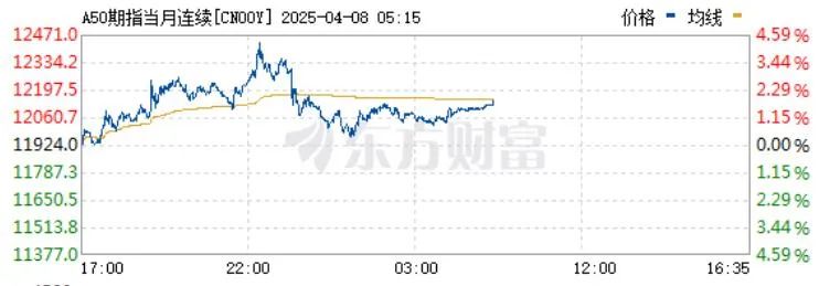 7日晚,富时中国A50指数期货夜盘重开后走高,一度涨超4%。该指数当日16:30收盘下跌8.45%。