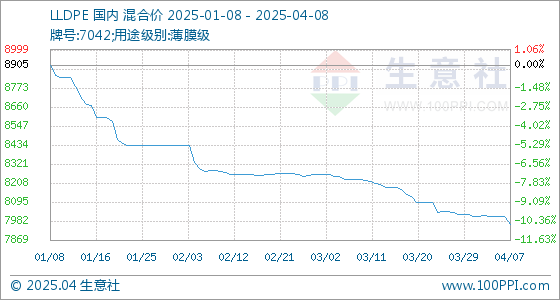 4月8日生意社LLDPE基准价为7963.33元/吨