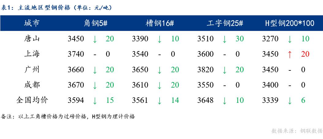 今日型钢价格稳中趋弱运行,降幅10-30元/吨。