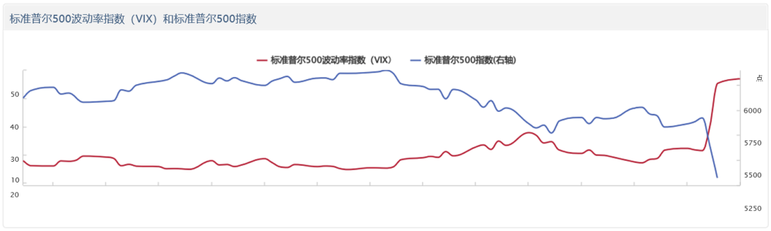 由于特朗普加征关税超市场预期,政策带来经济发展的不确定性,全球风险偏好整体回落。权益市场,以美股为代表大幅下滑,标普500指数连续两日日均跌幅超5%。市场恐慌情绪攀升,VIX指数上涨至2020年疫情以来的新高。